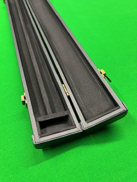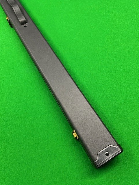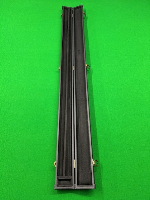 This case is a Black hard case with a "Leather Lookalike". Perfect case for anyone that's looking for a basic case on a budget. Inside you have 2 slots for your cue and extensions. This case has plastic end caps for protection.