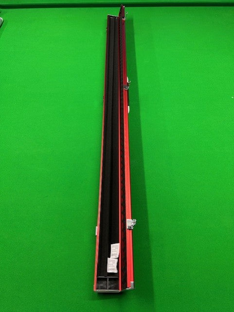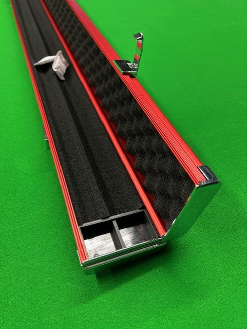Plain Red aluminium cue case with metal ends for protection. It features a foam interior with 2 slots for either carrying 2 one piece cues or 1 cue and extensions.